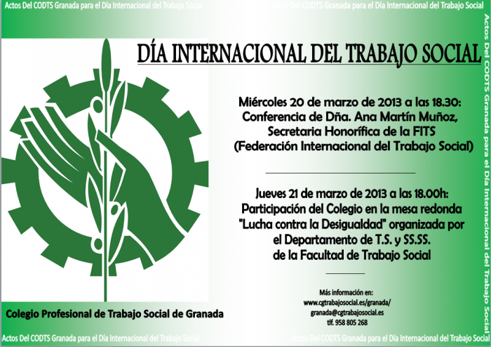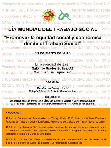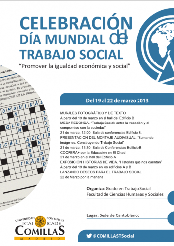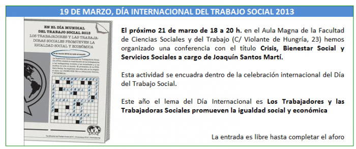 Del 19 al 22 de marzo de 2013 se celebrarán actos con motivo del Día Internacional del Trabajo Social organizados por el Grado en Trabajo Social.