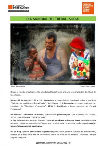 El Departamento de Trabajo Social y Servicios Sociales de la Facultad de Pedagogía de la Universidad de Barcelona se une a la celebración del Día internacional del Trabajo Social con una Jornada de actividades para alumnos/as y profesorado.