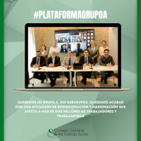 EL Consejo General del Trabajo Social se une a la Plataforma Grupo A. Esta plataforma trabajará para acabar con la situación de discriminación y marginación que afecta desde hace años a millones de trabajadores de distintos ámbitos sanidad, educación, ingeniería o trabajo social, entre otros, de nuestro país y que supone un injusto “techo de cristal” para su desarrollo profesional en beneficio de la sociedad.
