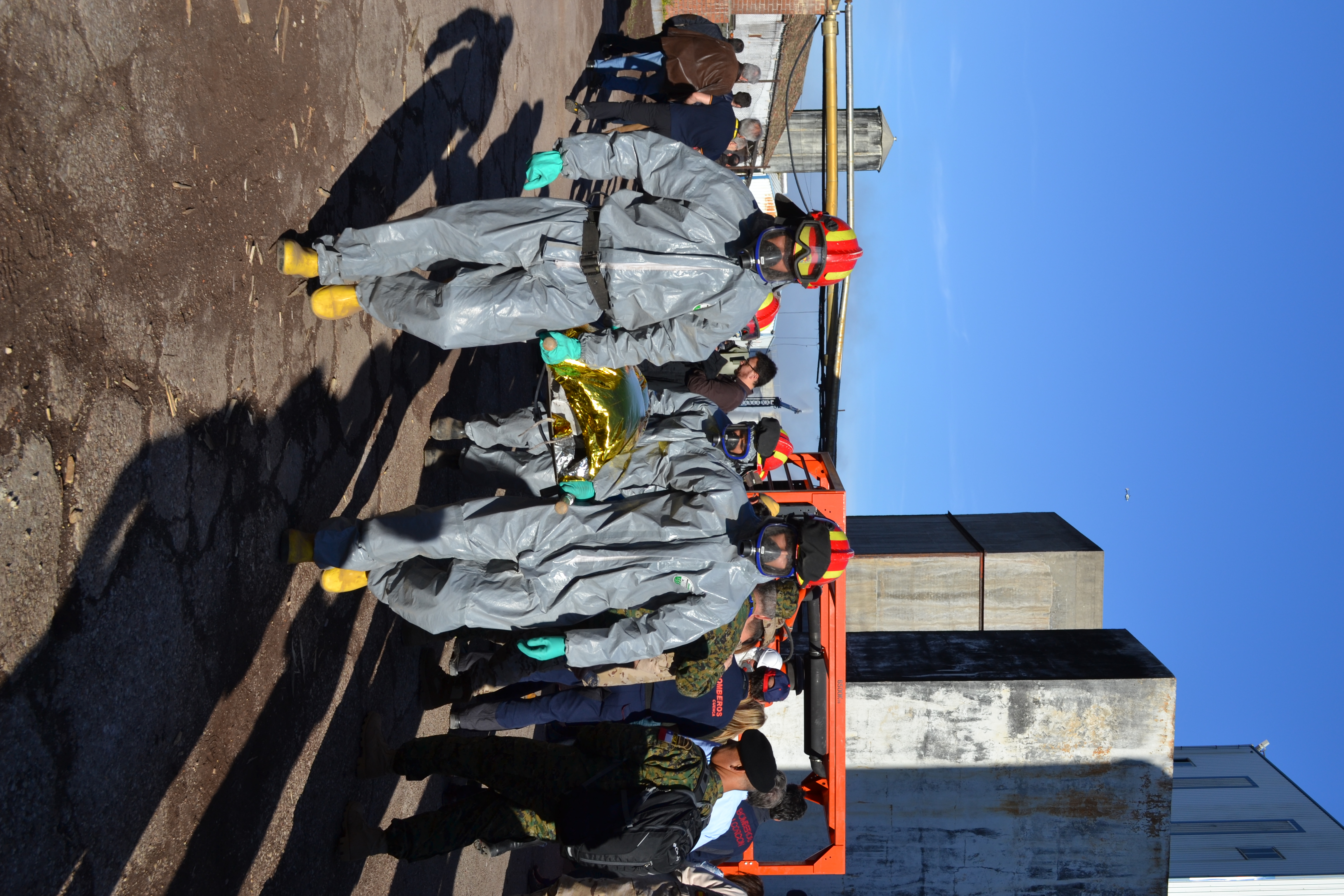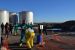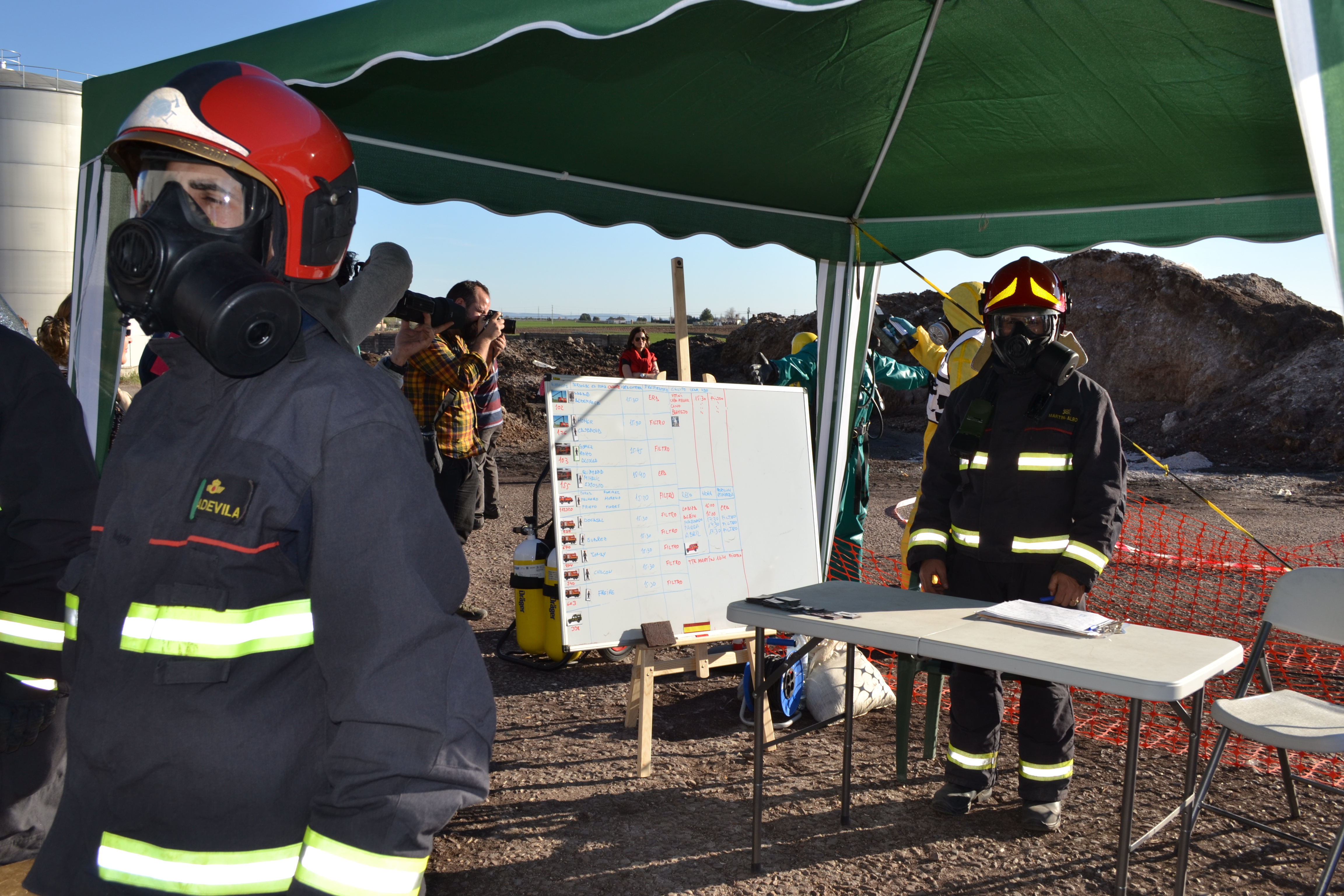 Trabajadores y trabajadoras sociales participan en un simulacro de catástrofe química en Daimiel