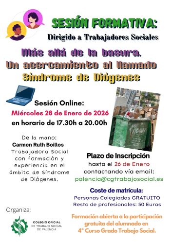Se llevara a cabo una sesión Online, el proximo miercoles 28 de enero, con el Título: “Más allá de la Basura. Un acercamiento al llamado Síndrome de Diógenes”.