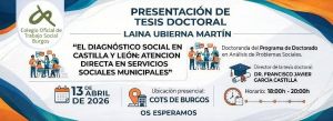 “PRESENTACIÓN DE LA TESIS DOCTORAL: El diagnóstico social en los puestos de atención directa de los/as trabajadores/as sociales de los servicios municipales de Castilla y León” realizada por una Trabajadora Social colegiada en Burgos.