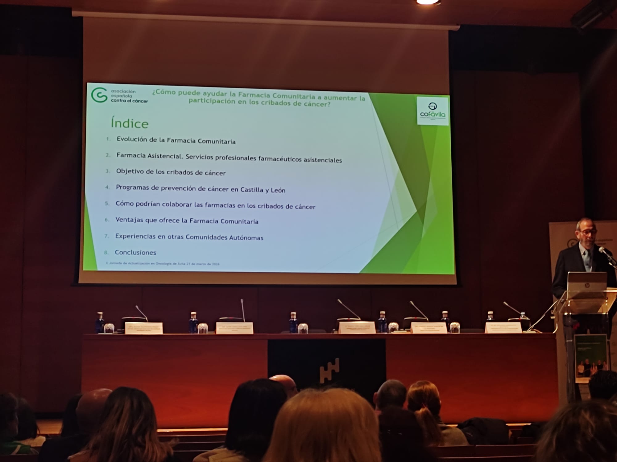 Y la importancia del colectivo de farmacéuticos en la prevención y cribado de cáncer, para finalizar con la ponencia realizada por la jefa del servicio de oncología de Ávila.