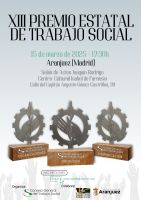 Abiertas inscripciones para asistir a la celebración del XIII Premio Estatal de Trabajo Social el próximo sábado 15 de marzo en el Centro Cultural Isabel de Farnesio en Aranjuez (Madrid) organizado en colaboración con el Colegio Oficial de Trabajo Social de Madrid y el Ayuntamiento de Aranjuez.
