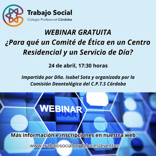 El próximo 1 de abril a las 17:00 horas, el Colegio Profesional de Trabajo Social de Córdoba te invita a participar en una webinar gratuita sobre Trabajo Social e Inteligencia Artificial,