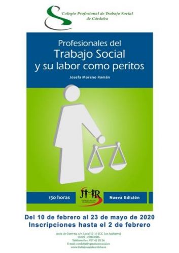 Horariodel lunes 23 de Enero al jueves 27 de Abril de 2023Se amplia el plazo de inscripción para el curso semipresencial-virtual “Trabajo Social Forense. La práctica de la Prueba Pericial”, organizado por nuestro Colegio Profesional e impartido por Josefa Moreno Román:
