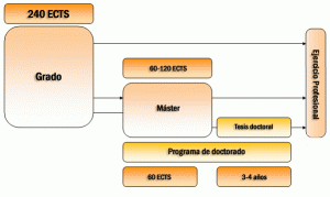 El nuevo sistema de titulaciones, en el que ya se incluye el Grado en Trabajo Social, se plantea en dos niveles consecutivos. Un primer nivel de Grado que se obtiene en cuatro años, cuenta con una base común y se cursan 240 créditos ECTS (el nuevo crédito europeo) con materias comunes y del mismo valor, dando lugar a la obtención de un título con salida al mercado laboral; y un segundo nivel de Posgrado, que permitirá la obtención del título de master (1-2 años, 60-120 créditos) y/o doctorado (con tiempo necesario para hacer la tesis y defenderla). Surgen nuevos Másters de especialización profesional y de orientación investigadora, que sustituirán a los cursos de doctorado.