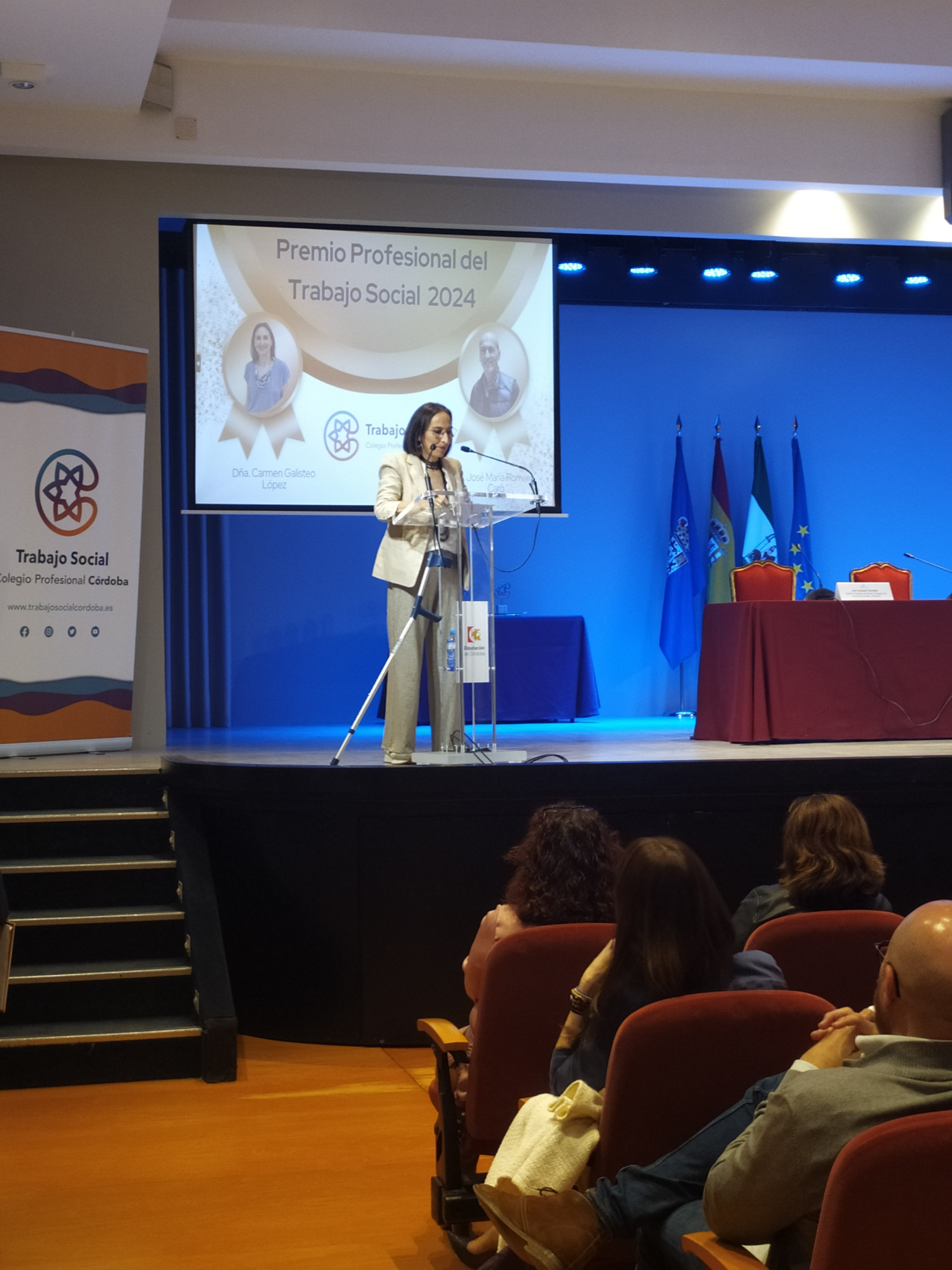 Posteriormente, el momento más emotivo lo vivimos con la entrega de los reconocimientos a las personas elegidas como Profesionales del Año 2024 a Dña. Carmen Galisteo López y D. José María Romero Caro.
