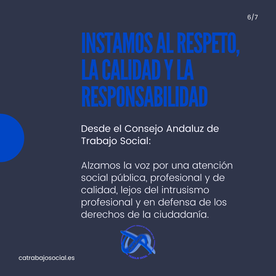 1. Continuaremos exigiendo a la Administración andaluza que garantice el respeto a las competencias profesionales de los y las trabajadoras sociales.