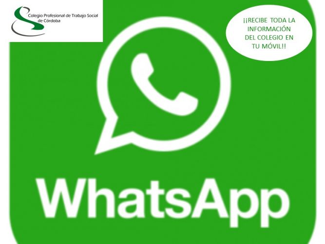 El Colegio de Trabajo Social de Córdoba inicia un nuevo servicio gratuito de información de listas de difusión por WhatsApp para l@s colegiad@s que lo deseen. A través de este nuevo canal se remitirá información de interés, como ofertas de empleo, cursos formativos y actividades que se lleven a cabo en nuestro Colegio.