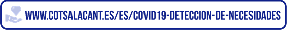 Canal de Detección de Necesidades El Colegio de Trabajo Social de Alicante ha abierto un nuevo canal de comunicación para recoger las necesidades detectadas por los equipos y centros de trabajo, con el fin de poder transmitirlas a las entidades con las que el Colegio se está coordinando con motivo del COVID-19 (Universidad de Alicante, Consejo Nacional, Administración pública, etc..).