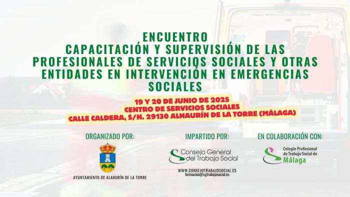 En colaboración con el Ayuntamiento de Alhaurín de la Torre y el Colegio Oficial de Trabajo social de Málaga, se realiza un encuentro en modalidad presencial, con el propósito de que el/la profesional se siga formando más ampliamente, si está interesado/a en especializarse en este ámbito de intervención.