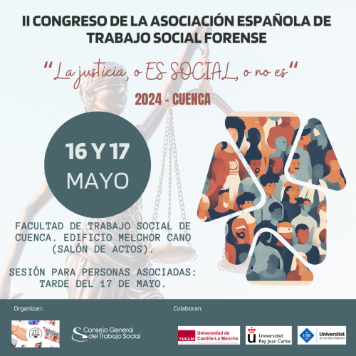 La Asociación Española de Trabajo Social Forense, en colaboración con el Consejo General del Trabajo Social organizan el II Congreso sobre Trabajo Social Forense, este año con el lema “La justicia, o ES SOCIAL o no es”.