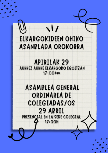 Lugar: Elkargoan eta online / Presencial en el Colegio y online