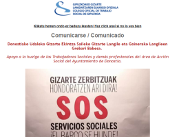 Apoyo del Colegio Oficial de Trabajo Social de Gipuzkoa a la huelga de las Trabajadoras Sociales y demás profesionales del área de Acción Social del Ayuntamiento de Donostia.