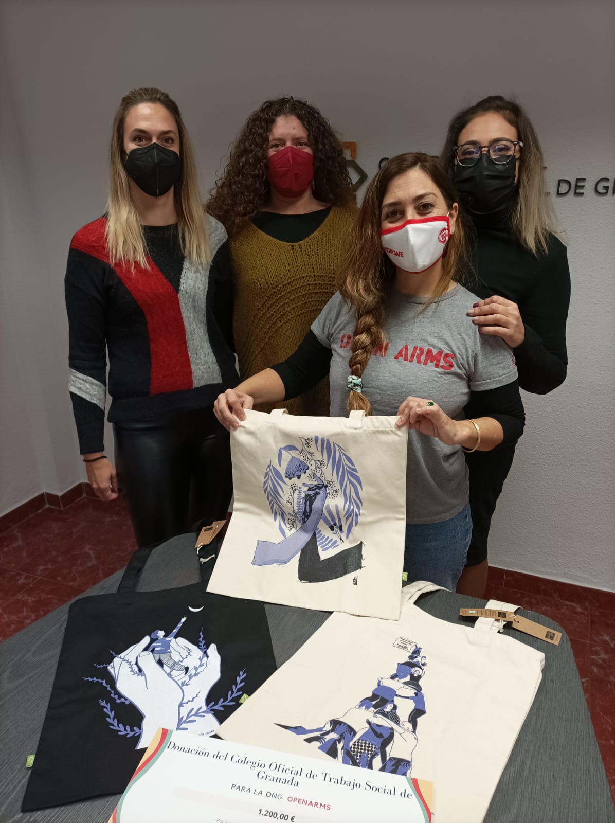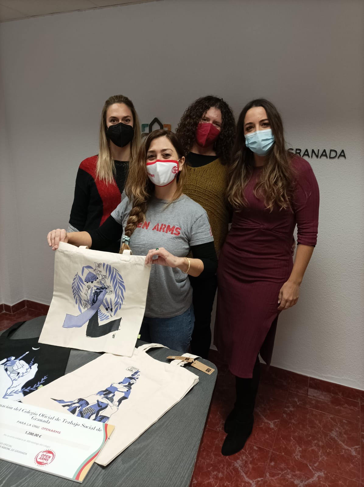 Aprovechando la visita de Ángeles a Granada para participar en la Jornada de Derechos Humanos organizada por el Colegio Oficial de Trabajo Social de Granada y la Facultad de Trabajo Social prevista para el día 9 de diciembre de 2021, ésta pasó por el Colegio para formalizar la entrega de la donación económica del Colegio por la venta de Bolsas de tela solidarias.