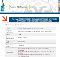El Departamento de Trabajo Social y SS.SS ofrece 8 medias becas para Colegiados de Granada en el Curso "Personas sin Hogar" y "Etica ante los nuevos retos de la practica profesional"