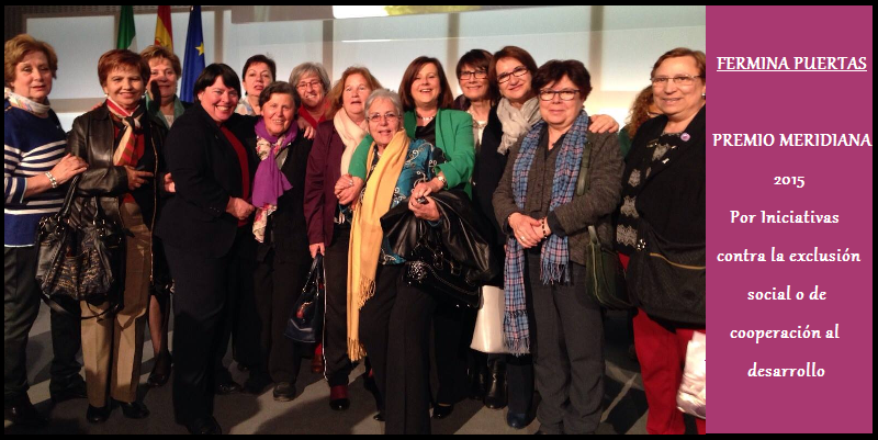 Nuestra Colegiada Fermina Puertas, Insignia de Oro de la Profesión y Trabajadora Social incansable, recibió de manos de la Presidenta de la Junta de Andalucía, el Premio Meridiana 2015 en la modalidad de Iniciativas contra la exclusión social o de cooperación al desarrollo.
