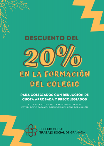 Desde el Colegio Oficial de Trabajo Social de Granada, os informamos que en reunión de Junta de Gobierno celebrada el pasado 20 de enero de 2022, ésta aprobó por unanimidad un descuento del 20% en la formación que ofrece el colegio para sus colegiados/as.