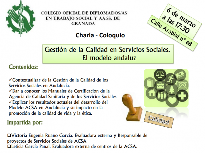 El Colegio imparte el día 6 de marzo una charla de Calidad en los Servicios Sociales