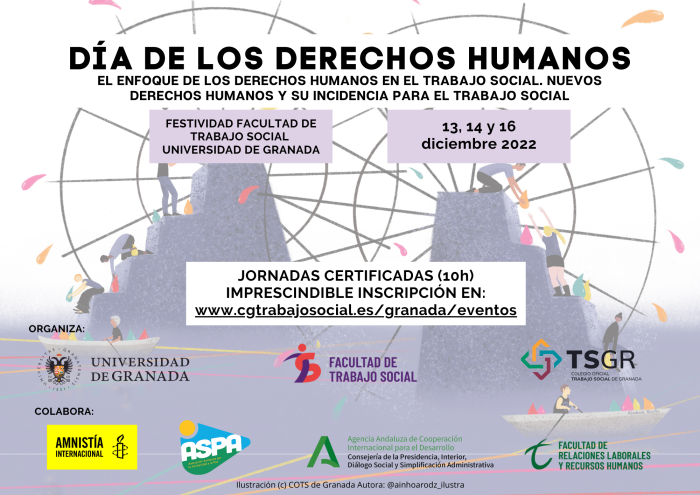 Un acto con tres sesiones, en horario de mañana o tarde, que celebraremos los días 13, 14 y 16 de diciembre de 2022 y en el que colaborarán Amnistía Internacional, Asociación por la Solidaridad y La Paz, Agencia Andaluza de Cooperación Internacional al Desarrollo y la Facultad de Relaciones Laborales y Recursos Humanos de la UGR.