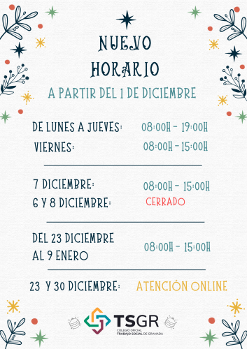 El Colegio Oficial de Trabajo Social de Granada amplía el horario de la atención colegial a partir del 1 de diciembre de 2022.