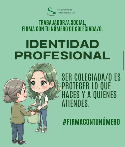 El Colegio Oficial de Trabajo Social de Jaén, continúa con la campaña #FirmaConTuNúmero. El Colegio Oficial de Trabajo Social de Jaén quiere fomentar la importancia de que cada colegiada/o firme con su número de colegiado/a.