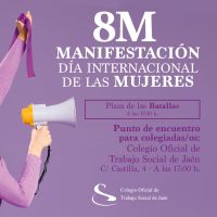 Mañana, día 8 de marzo, esperamos a todo el que quiera asistir a las 17:00 h en el Colegio Oficial de Trabajo Social de Jaén (C/ Castilla Nº4)