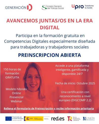 Sabemos que para las y los profesionales del Trabajo Social, la actualización y el crecimiento son esenciales, por eso, desde el Consejo General nos hemos adherido a esta formación en la que la parte específica ha sido creada a medida para el Trabajo Social, pensando en los retos y necesidades reales de nuestra profesión. Es una oportunidad excepcional para crecer, actualizarte y fortalecer tu práctica profesional. No dejes que se te escape: está hecha para ti