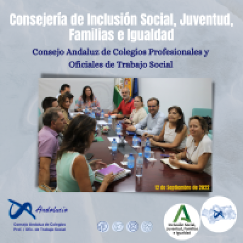 En la tarde del 12 de septiembre, a las 17:30 horas, el Consejo Andaluz de Colegios Profesionales y Oficiales de Trabajo Social se reunía con la Consejera de Inclusión Social, Juventud, Familias e Igualdad.