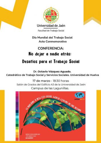 Acto conmemorativo con motivo del Día Mundial del Trabajo Social. Conferencia el 17 de marzo a las 18:30h en el Salón de Grados del Edificio A3 de la Universidad de Jaén Campus de Las Lagunillas.