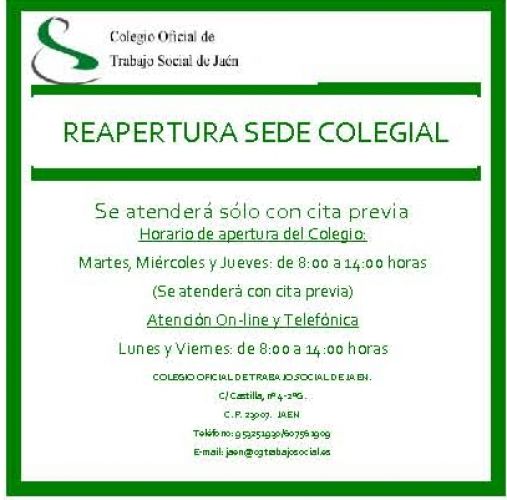 Se informa que el Colegio reanuda la apertura de su sede física