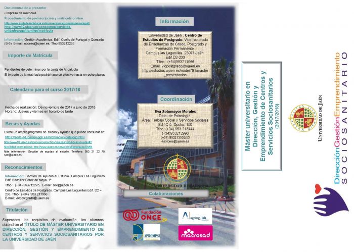 Máster Universitario en Dirección, Gestión y Emprendimiento de Centros y Servicios Sociosanitarios