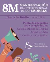 Como cada año el Colegio Oficial de Trabajo Social de Jaén asiste a la manifestación del 8M. Por ello convocamos a todos/as los/as colegiados/as en la C/ Castilla Nº4 a las 10:30 para asistir juntos/as a la Plaza de las Batallas.