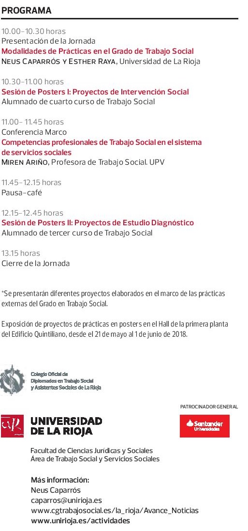 22 de mayo. Lugar y hora: Sala de Grados Edificio Quintiliano. Universidad de La Rioja. De 10:00h a 13:15h