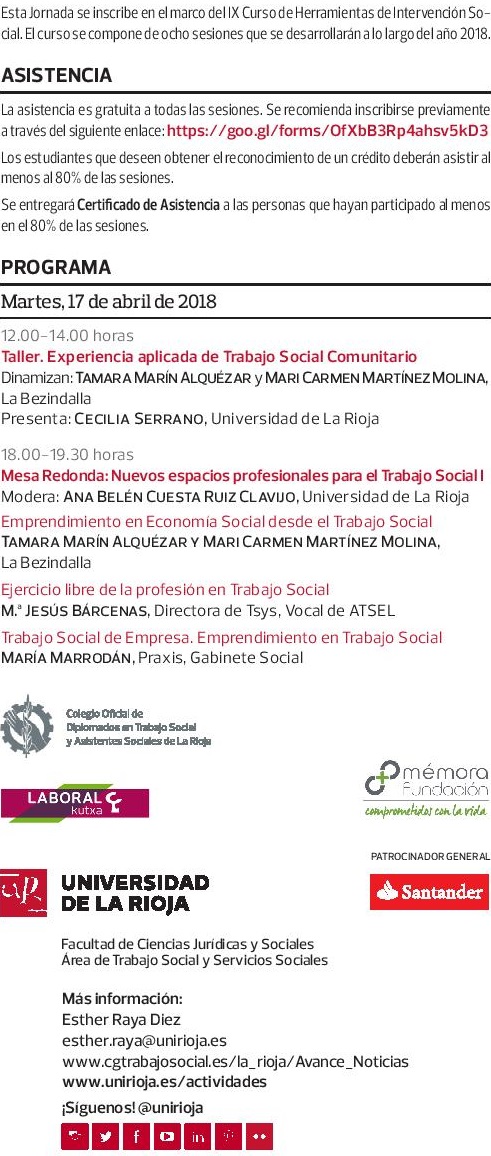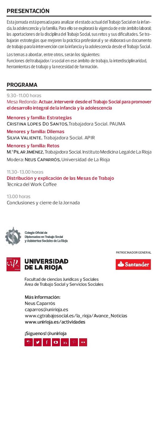 Lugar y hora: Sala de Grados Edificio del Quintiliano de la Universidad de La Rioja de 9:30h a 13:00h