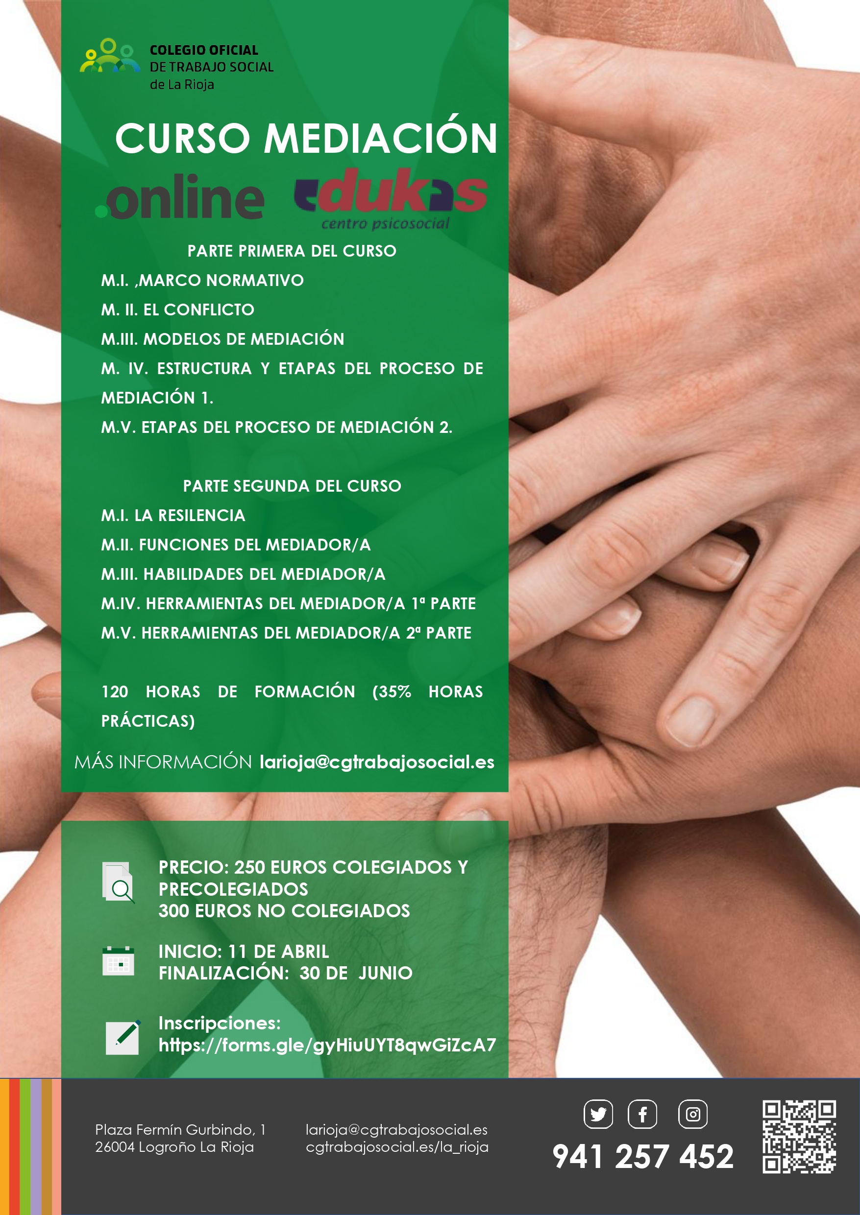 Información e inscripción: https://www.cgtrabajosocial.es/la_rioja/noticias/curso-de-mediacion-civil-y-mercantil-1/13465/view