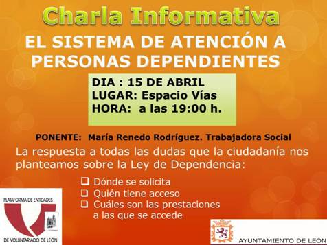 CHARLA INFORMATIVA. "EL SISTEMA DE ATENCIÓN A PERSONAS DEPENDIENTES". 15 DE ABRIL 2014