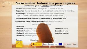 curso de “Autoestima para mujeres”, que se realiza a través de nuestra plataforma de formación. https://formacion.asociacionsimonebeauvoir.org/