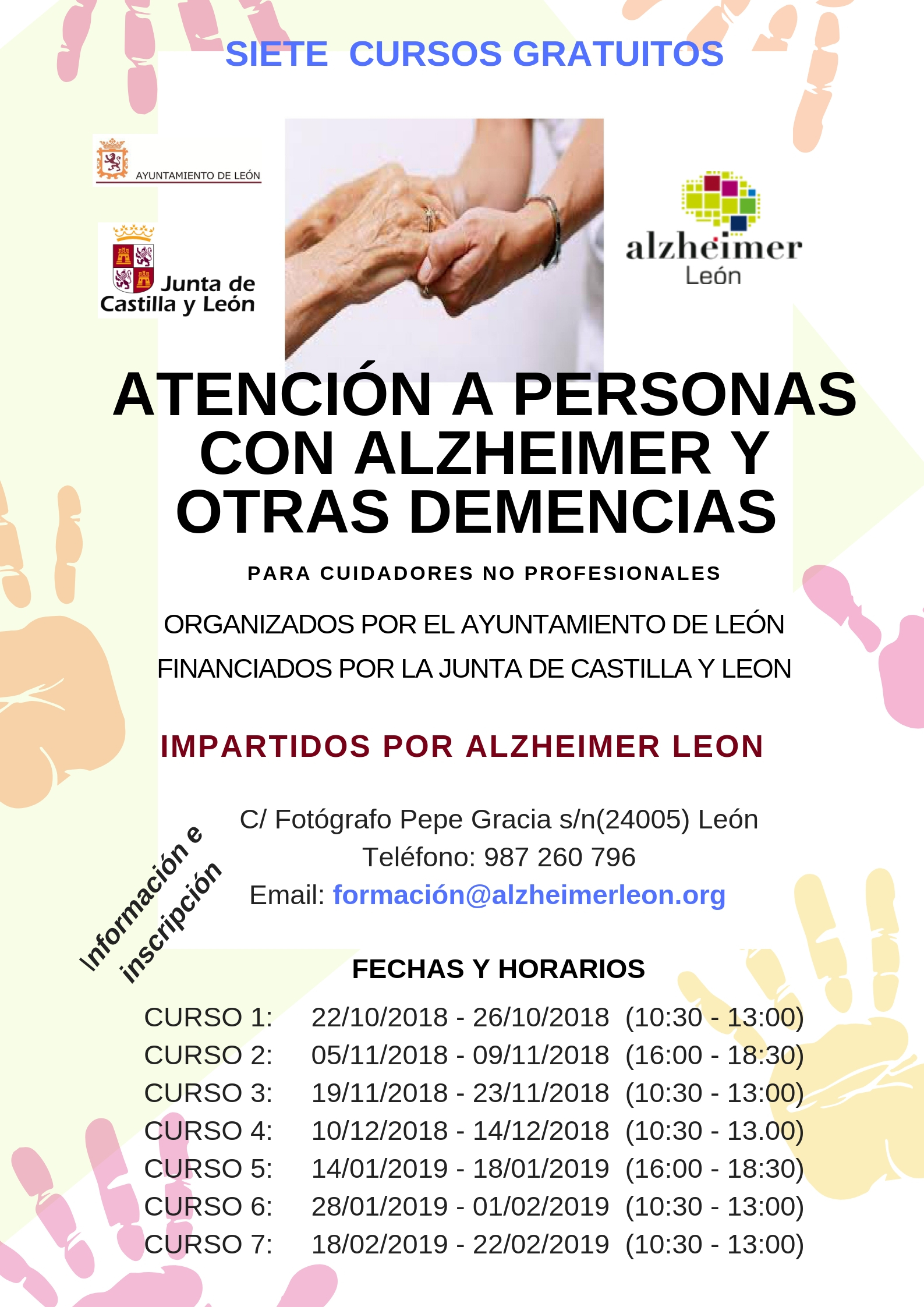 Teléfono: 987260796, ext. 6 opor medio de correo electrónico: formacion@alzheimerleon.org