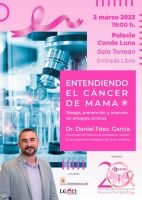Día 2 de marzo. CHARLA: ENTENDIENDO EL CÁNCER DE MAMA. RIESGO, PREVENCIÓN Y AVANCES EN ENSAYOS CLÍNICOS. Organizada por Asociación ALMÓN