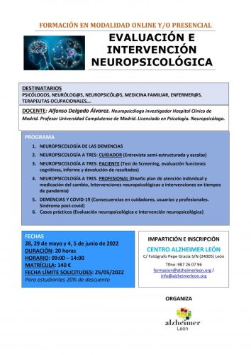 miércoles 6 de abril de 2022 de 17:30 a 19:30h en la modalidad online gratuita
