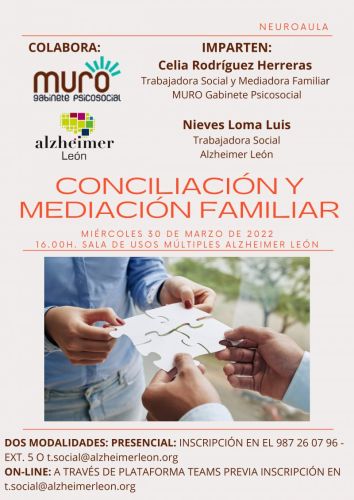 CHARLA: CONCILIACIÓN YMEDIACIÓN FAMILIAR. MIÉRCOLES 30 DE MARZO DE 2022