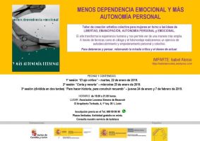 TALLER: "MENOS DEPENDENCIA EMOCIONAL Y MÁS AUTONOMÍA PERSONAL" 22 y 23 de enero organizado por A. L. Simone de Beauvoir
