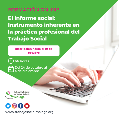 Horariolunes 23 de septiembre de 2024El próximo 23 de septiembre de 2024 a las 17:30 horas tendrá lugar una nueva charla organizada por el Colegio Profesional de Trabajo Social de Málaga. En esta ocasión, Ana Belén Domínguez Milanés, Trabajadora Social, Socióloga y Técnico de gestión del Consejo General del Trabajo Social, nos ofrecerá información para el ejercicio de la profesión en otro país.