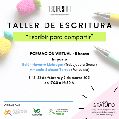 La Revista TSDifusión, compuesta por los Colegios de Trabajo Social de Cádiz, Huelva y Málaga, ha organizado una formación virtual para dotar de herramientas prácticas a las personas colegiadas para el ejercicio de la escritura como medio de construcción y divulgación de conocimiento propio de nuestra profesión.