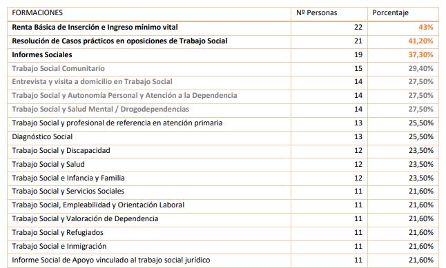 No existe una lista cerrada de temas sobre los que se desarrollará la acción formativa, el único requisito es que tenga relación directa con la profesión de trabajo social.