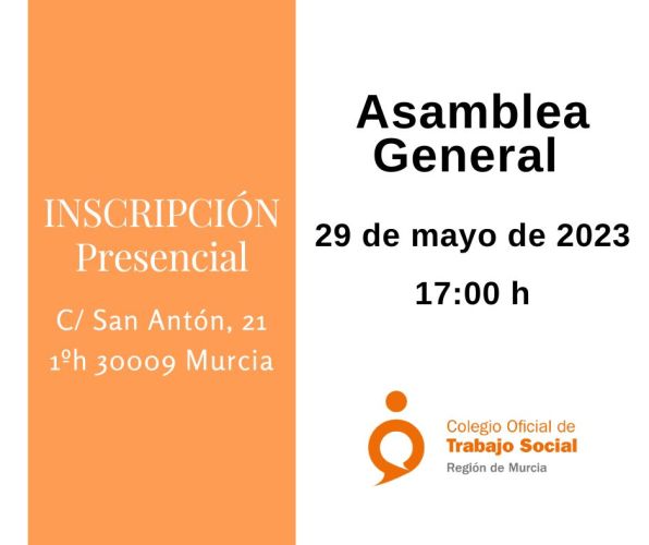 Enlace a la reunión: al completar la inscripción, recibirás un correo automático con el enlace de acceso.* Si no lo recibes, debe haber algún error en tu inscripción o en el correo, ponte en contacto con el Colegio para solventarlo antes de la fecha de reunión, en el mail gestionmurcia@cgtrabajosocial.es o el teléfono 649909943.