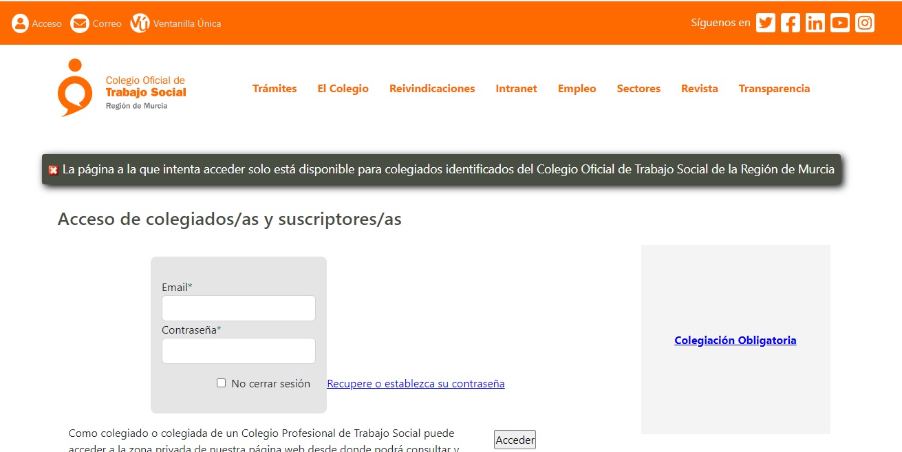 A continuación indicamos los pasos a seguir si no tienes contraseña o no la recuerdas cuando intentes acceder a una página restringida a personas colegiadas: