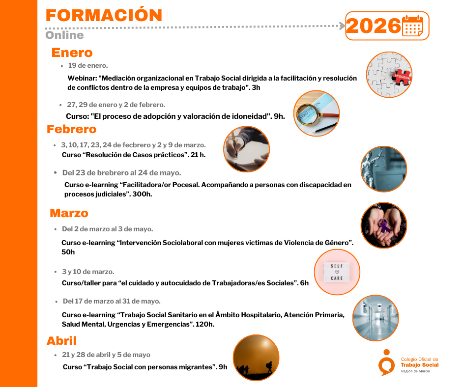 Dirigida exclusivamente a personas colegiadas y precolegiadas de Trabajo Social, previa inscripción y pago hasta completar aforo. Para la gestión, dudas o incidencias, debe consultar a: gestionmurcia@